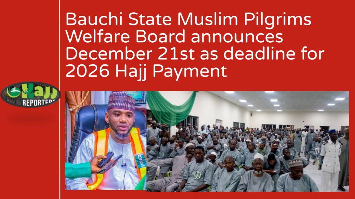 The Bauchi State Muslim Pilgrims Welfare Board has set 21st December 2025 as the deadline for payments ahead of the 2026 Hajj exercise.