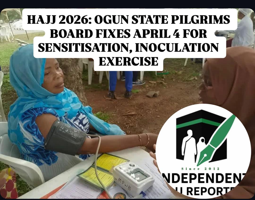 The Ogun State Muslim Pilgrims Welfare Board (OGMPWB), has announced Saturday, April 4, 2026, as the date for the sensitisation and inoculation exercise for all intending pilgrims for the 2026 Hajj.