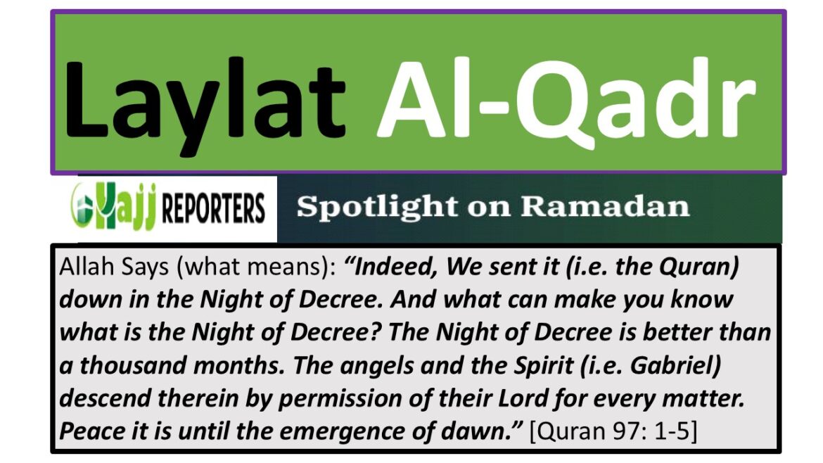 Allah Says (what means): “Indeed, We sent it (i.e. the Quran) down in the Night of Decree. And what can make you know what is the Night of Decree? The Night of Decree is better than a thousand months. The angels and the Spirit (i.e. Gabriel) descend therein by permission of their Lord for every matter. Peace it is until the emergence of dawn.” [Quran 97: 1-5]