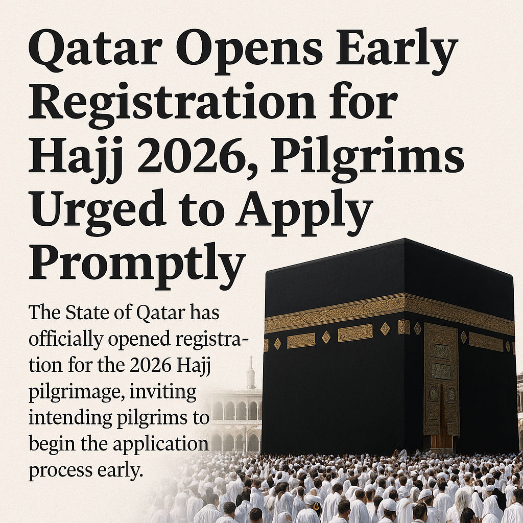 The State of Qatar has officially opened registration for the 2026 Hajj pilgrimage, inviting intending pilgrims to begin the application process early. Authorities announced that the move is aimed at ensuring a smooth, transparent, and well-organized selection process ahead of the sacred journey.