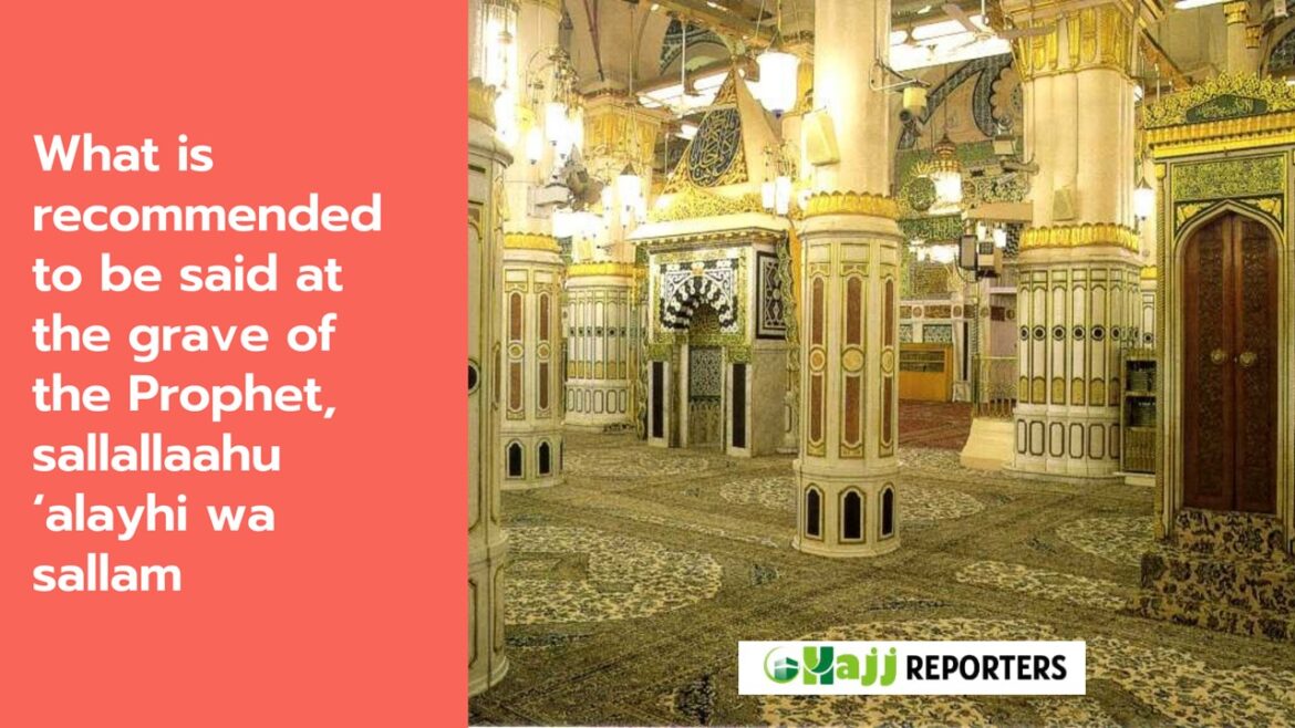 What is recommended to be said at the grave of the Prophet, sallallaahu ‘alayhi wa sallam